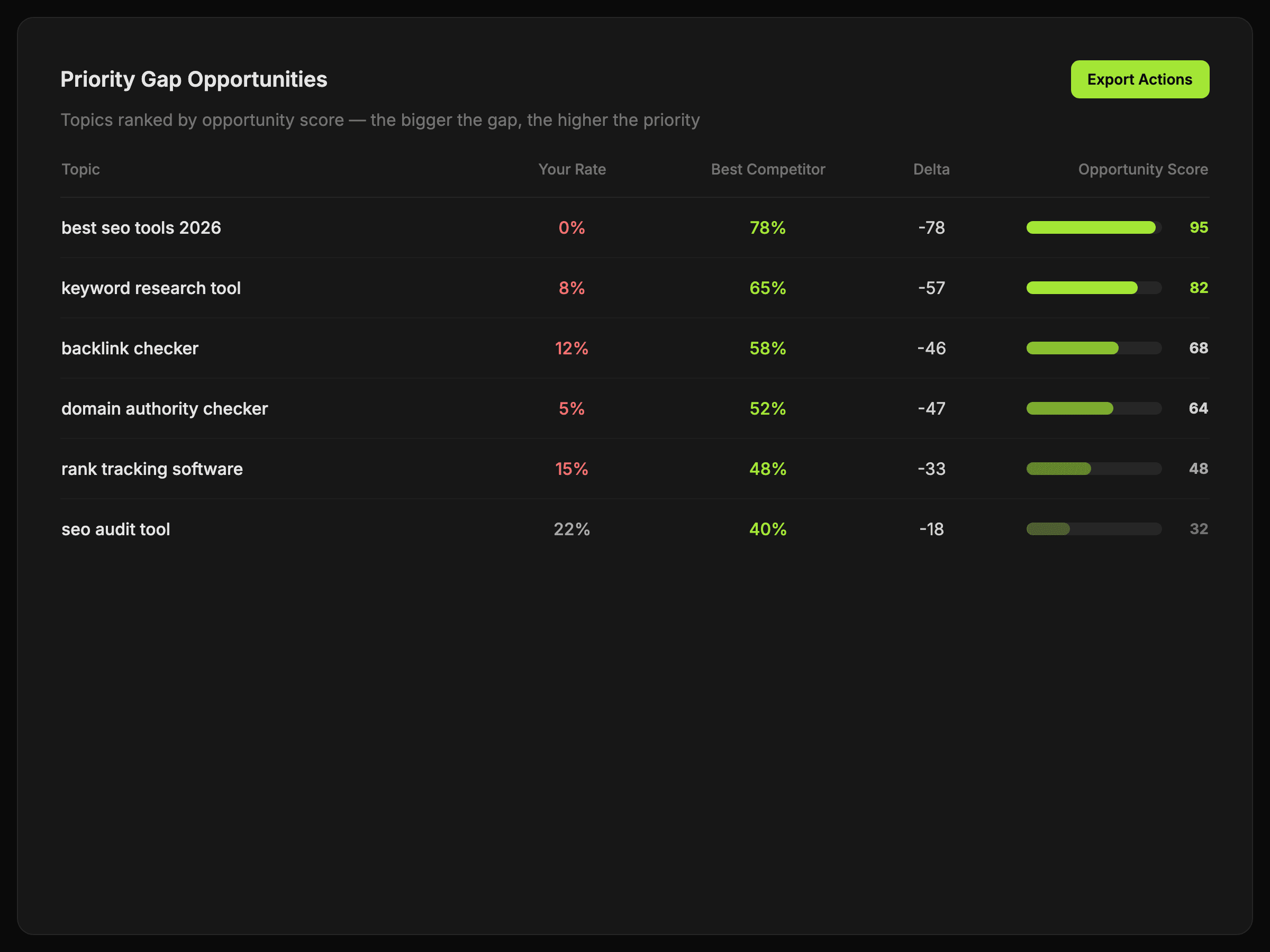 Use the gap to decide which topics, pages, or supporting signals deserve the next round of work.