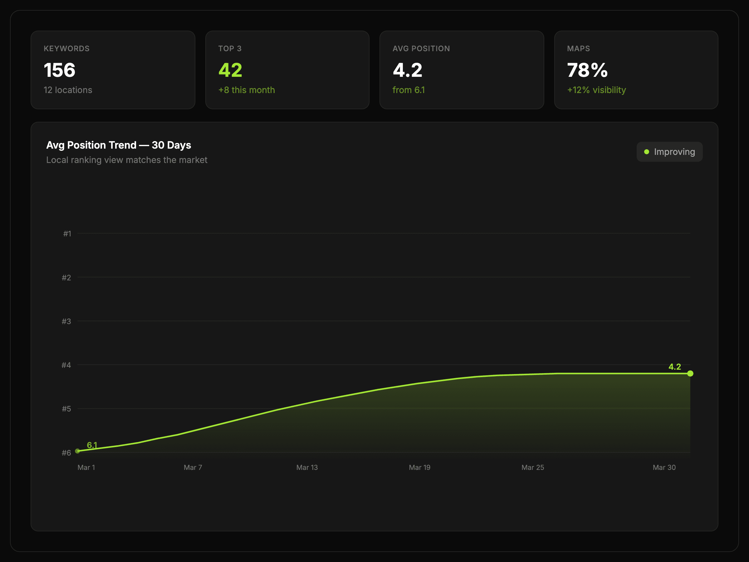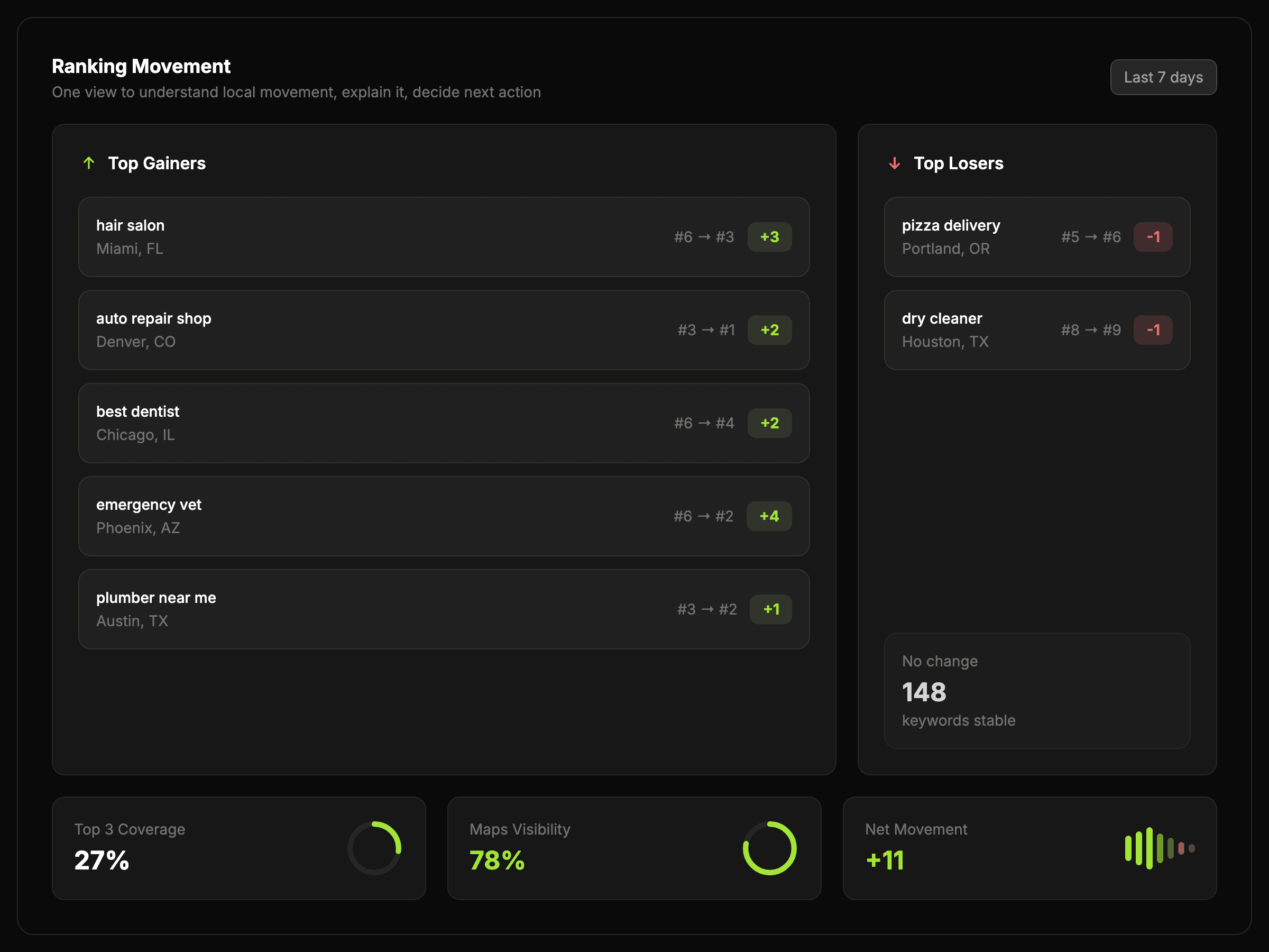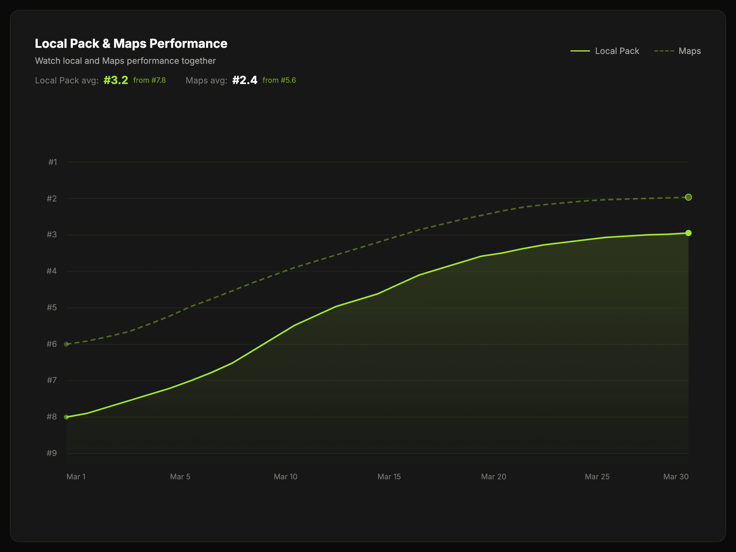 Monitor local and Maps performance, compare movement over time, and keep location-based reporting easier to manage.