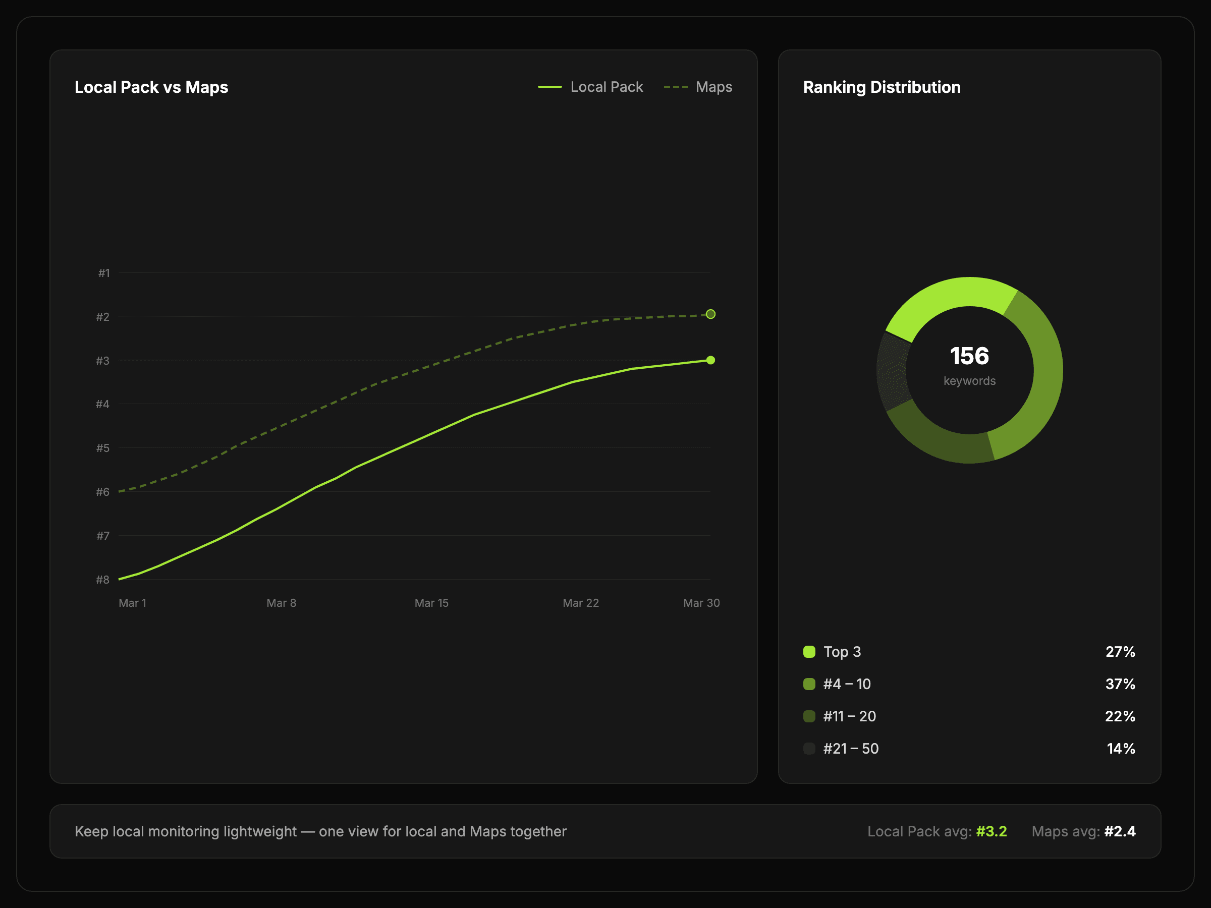 See how local pack and Maps visibility are moving without treating them as a separate manual workflow.