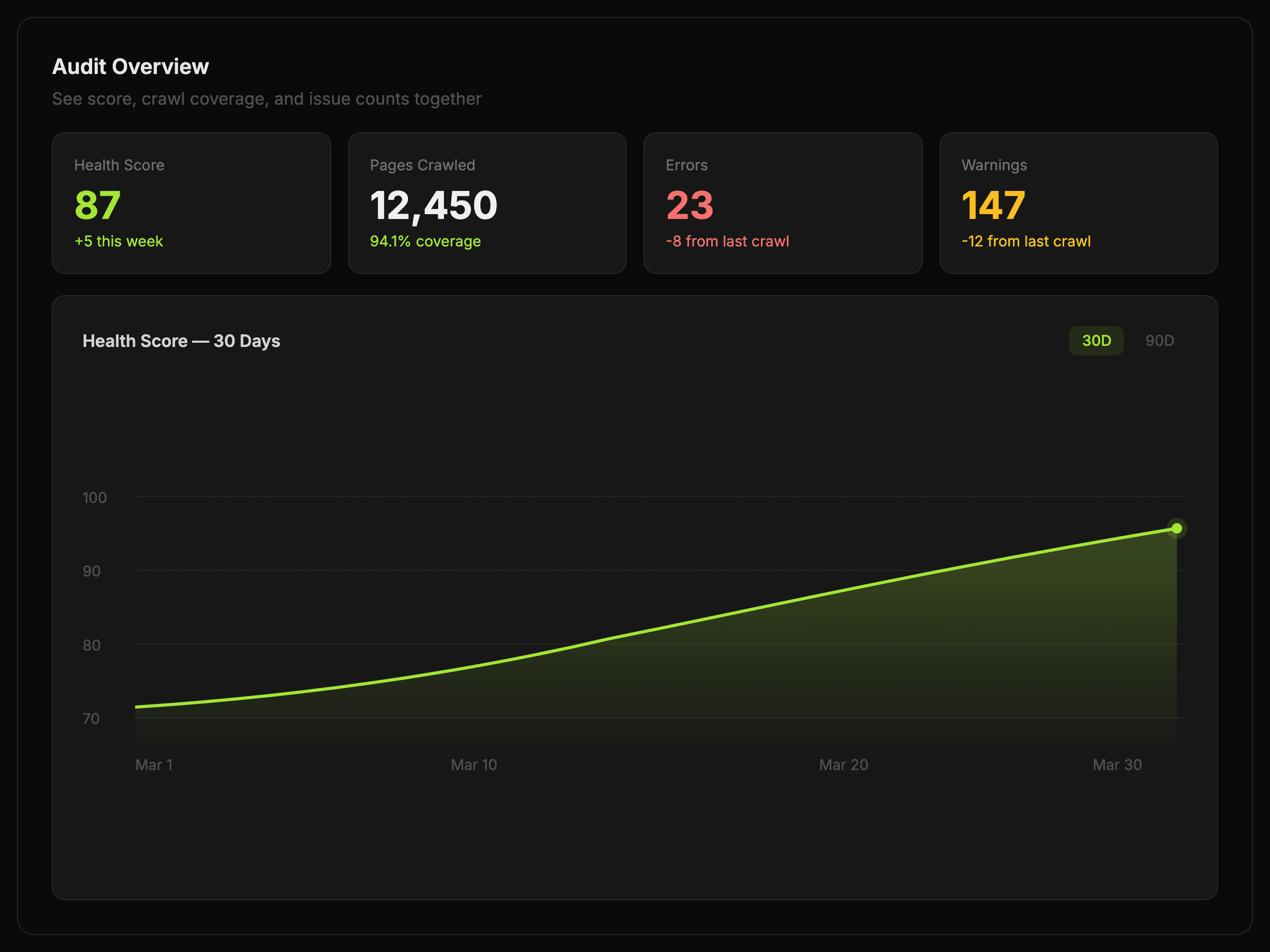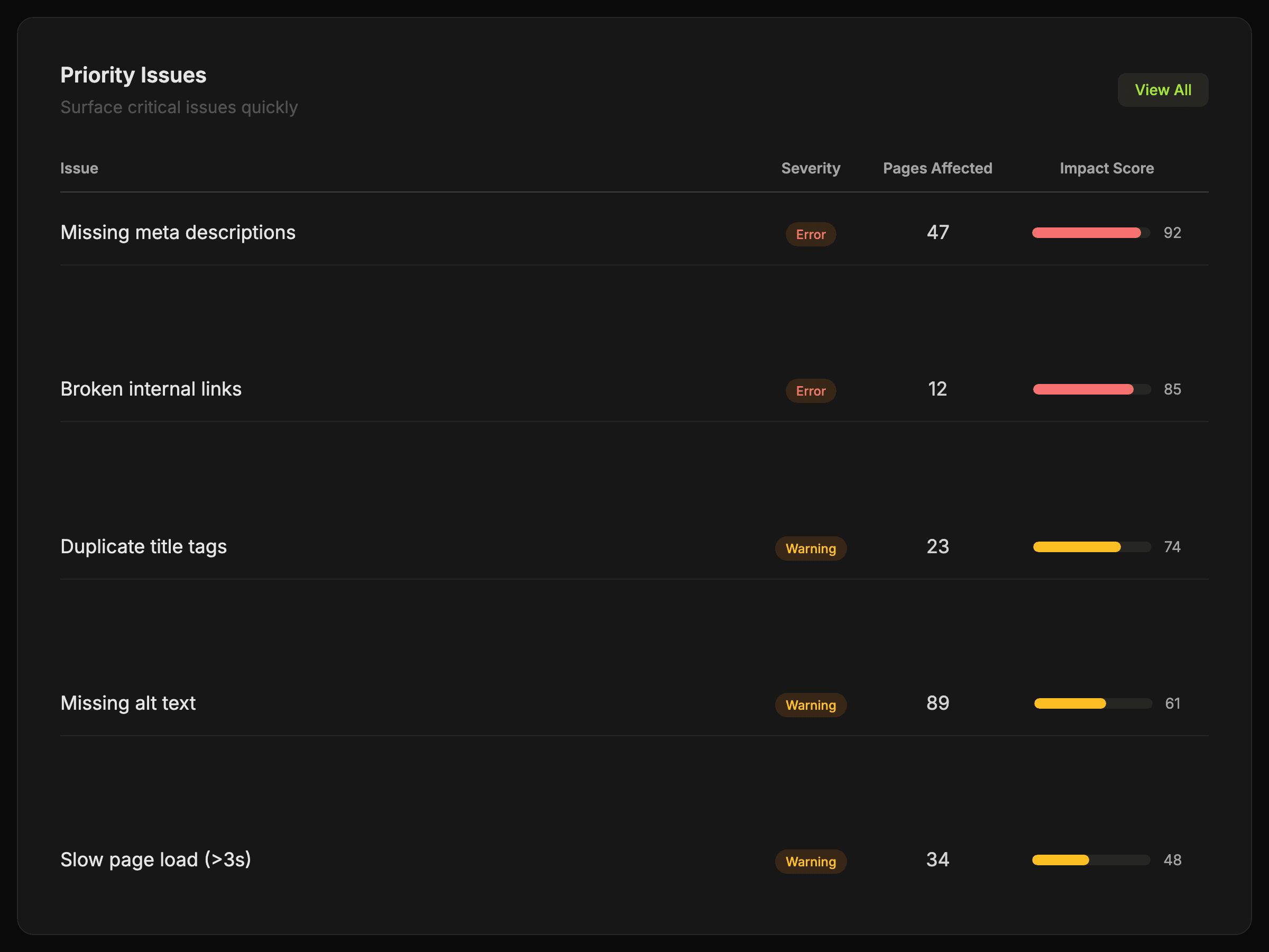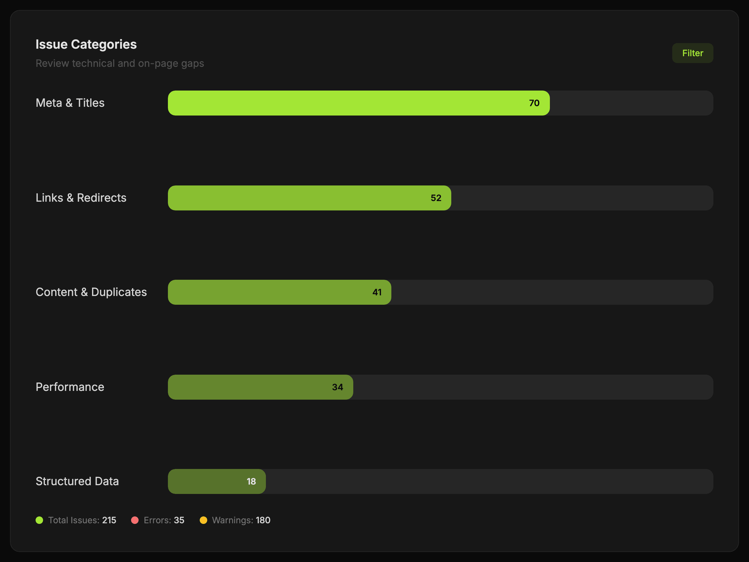 Crawl pages, surface technical and on-page issues, and move from audit findings to practical fixes with less noise.