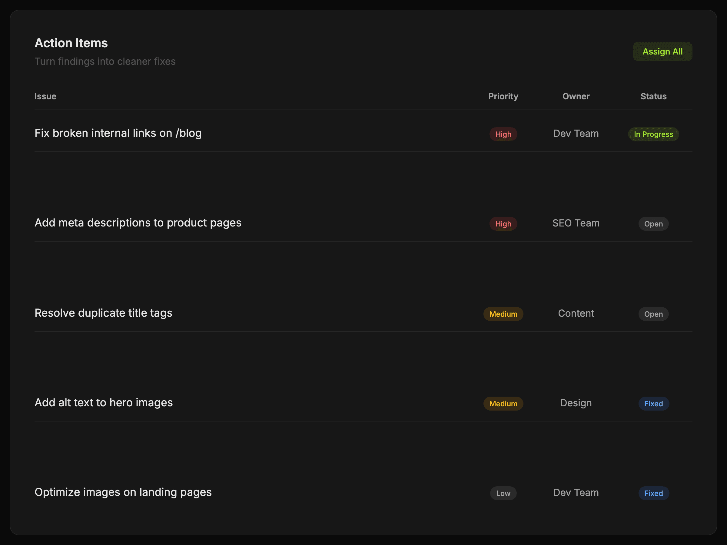“The audit output is easier to hand off because the issues are already organized around what needs action.”