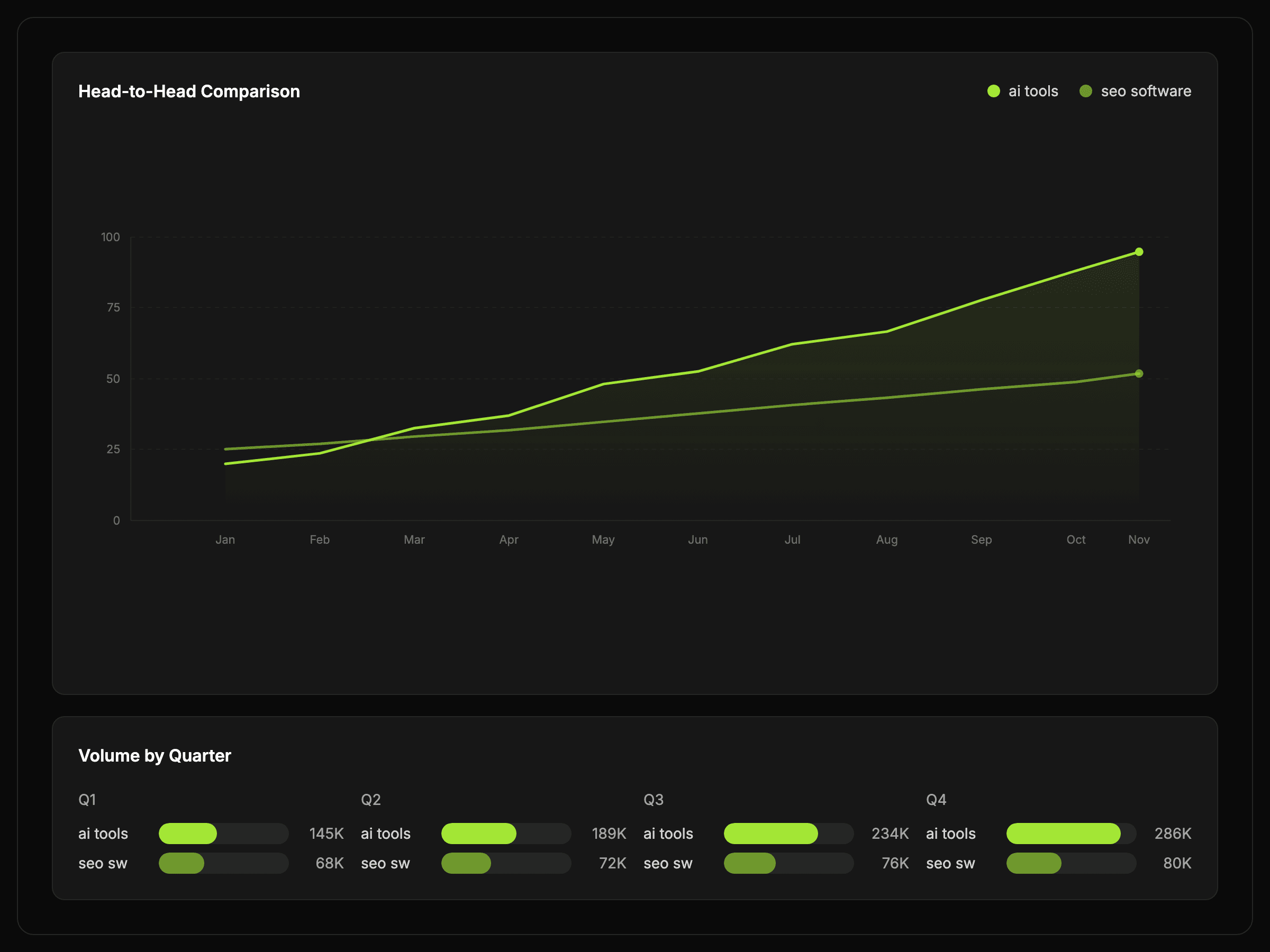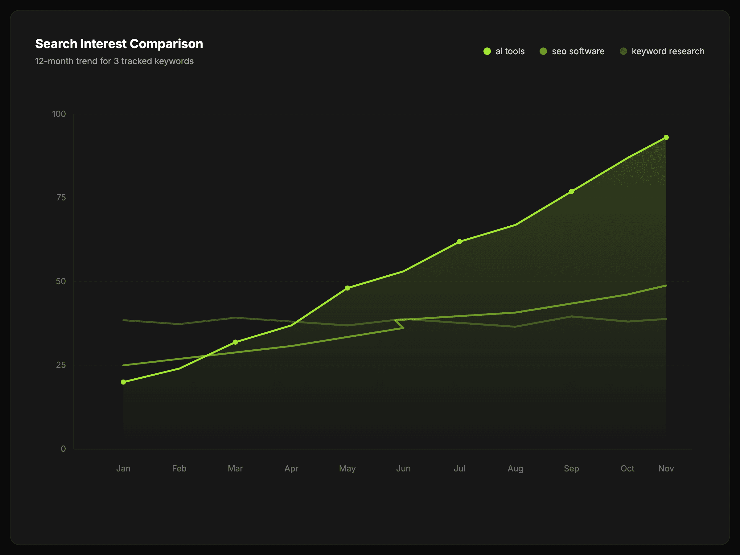Put multiple keywords on one trend line so differences in momentum are easier to read.