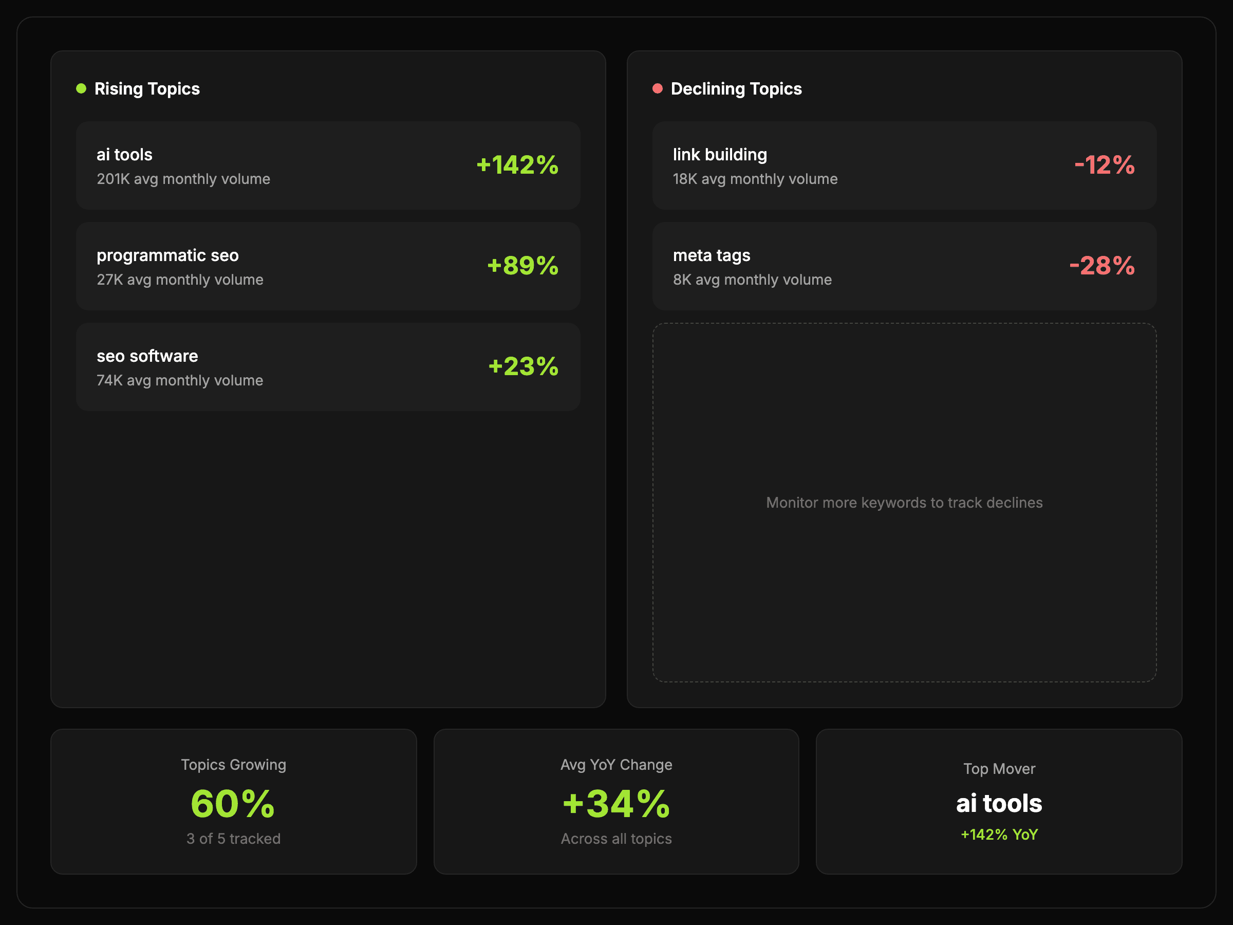 Answers to the questions teams ask when they want a clearer view of search interest movement and topic momentum.
